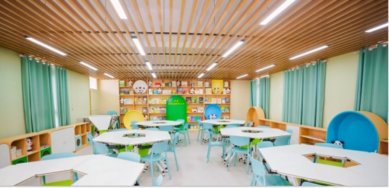 该项目与专业团队合作,将四所学校的闲置空间改造为集艺术教育、阅读交流于一体的多功能美育教室。每间教室色彩明亮、布局科学,配备桌椅、书架、艺术材料及多媒体设备,成为孩子们表达情感、探索自我的安全角落。
