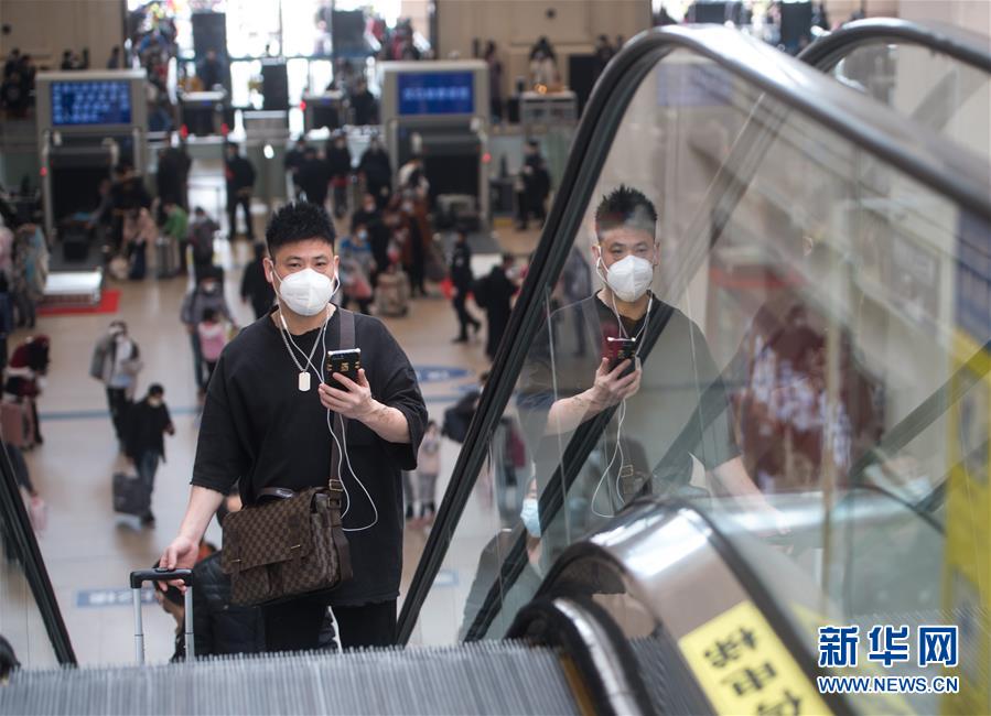 4月8日,乘客在汉口火车站排队进站。 新华社记者 肖艺九 摄
