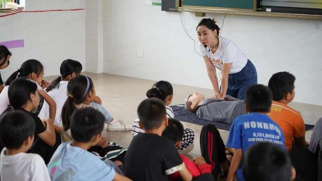 志愿者给孩子们演示急救常识。受访者供图