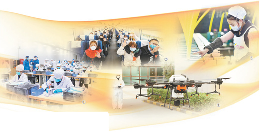 图④:在广东深圳市宝龙工业园,志愿者用无人机进行防疫消杀。