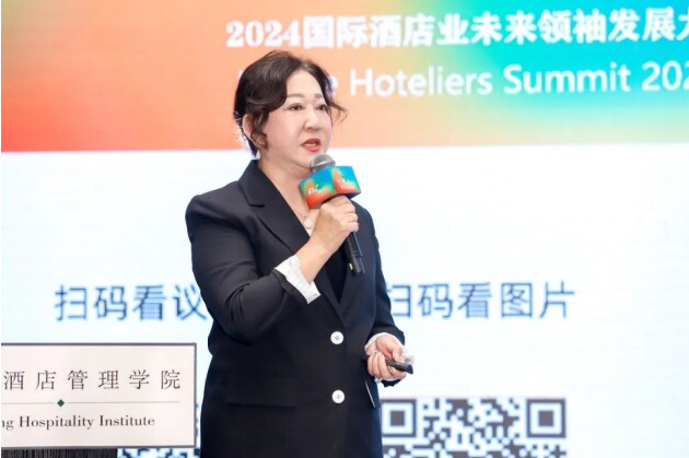 上海橘春望舒酒店管理公司总经理、国家级绿色饭店高级评审员李晓琴女士围绕“问题导向、市场需求下,寻求饭店业可持续发展”做主题发言