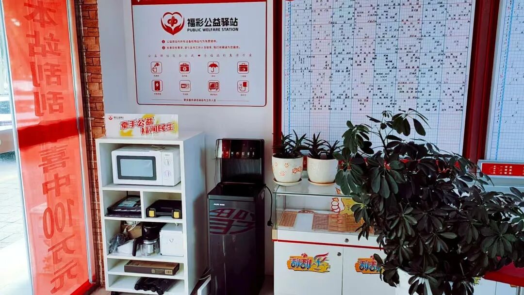位于市北区四流南路66号甲万科未来城内的福彩37020473销售站十多年来始终为周边彩友提供着暖心服务。站内公益驿站的设立,更是让大家感受到了来自福彩的关爱。该区域相应设备一应俱全,包括茶吧机、医药箱、微波炉、充电设施等,不仅为彩友,也为过往行人、户外工作者等提供了极大便利。