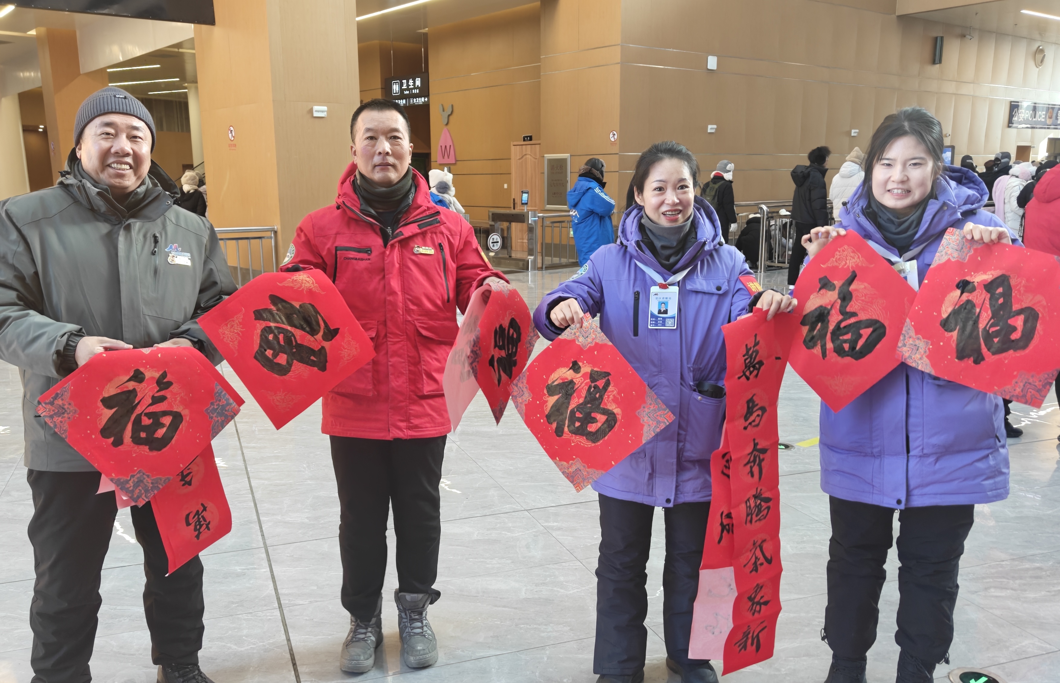 书法家们挥毫泼墨,将美好的新春祝福融入字里行间。一副副寓意吉祥的春联、一张张红火喜庆的“福”字相继呈现,现场墨香洋溢,年味浓厚,吸引了众多游客驻足参与。