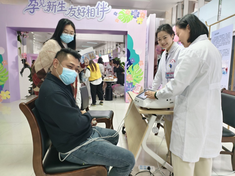 与此同时,孕妈“生育友好”嘉年华温情开启。广西妇幼保健院副院长黄晶出席活动并表示,医院致力于推进“生育友好型医院”建设,希望通过可感知的服务,让孕妈真切感受到专业、安心、有温度的分娩支持。活动现场设置分娩镇痛体验、中医养生、医疗美容、儿童健康管理四大体验展区。准爸爸们积极体验分娩镇痛仪,切身感受妻子将要承受的疼痛,现场既温馨又感动。