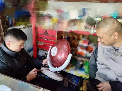 图为志愿者为胡遂平修理小家电